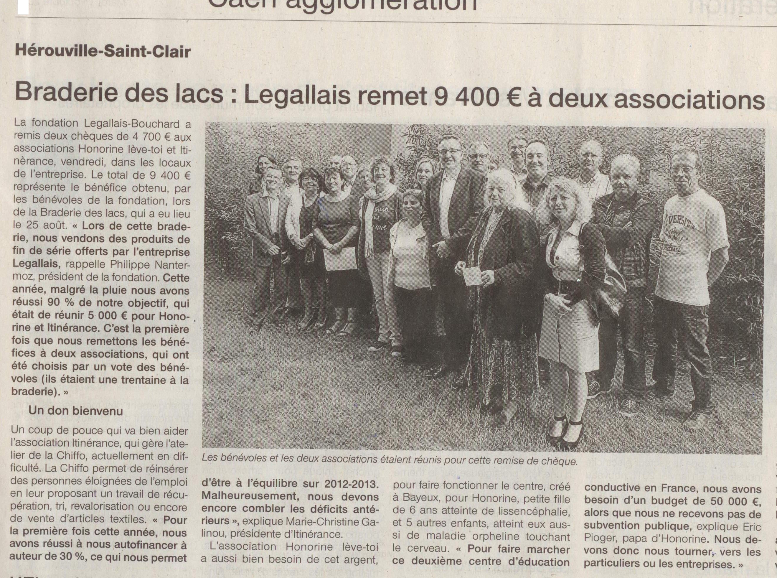 Braderie des lacs: Legallais remet 9 400€ à deux associations