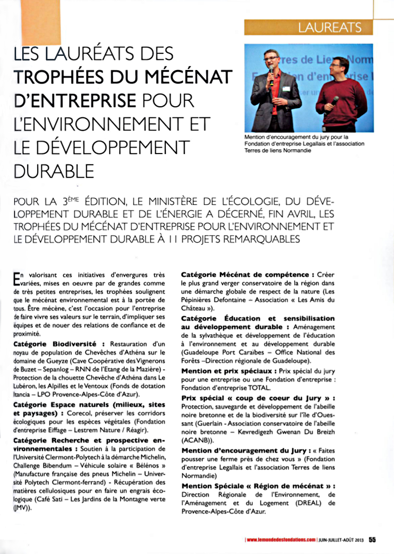 La fondation d’entreprise Legallais dans le Monde des Fondations !